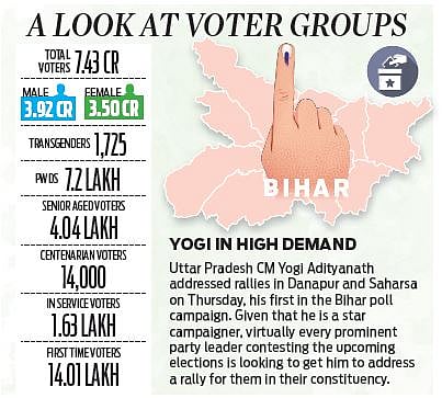 Before the election dates were announced, the NDA launched schemes for women and youth, including direct transfers of `10,000 into the accounts of crores of women. With 3.5 crore women among Bihar’s voters, the move is aimed at winning support from this group.