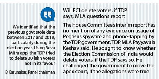 The Assembly had constituted the House Committee after West Bengal Chief Minister Mamata Banerjee alleged that the previous N Chandrababu Naidu-led TDP government had purchased the controversial Pegasus spyware.