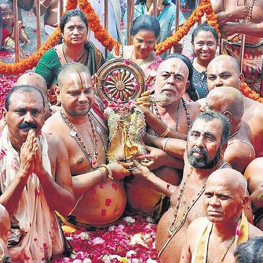 During Chakra Snanam to the utsava idol of Sri Padmavathi Devi and Sri Sudarshana Chakrathalwar between 12 noon and 12.10 pm, thousands of devotees also took holy dip chanting “Govinda... Govinda” with utmost religious ecstacy.