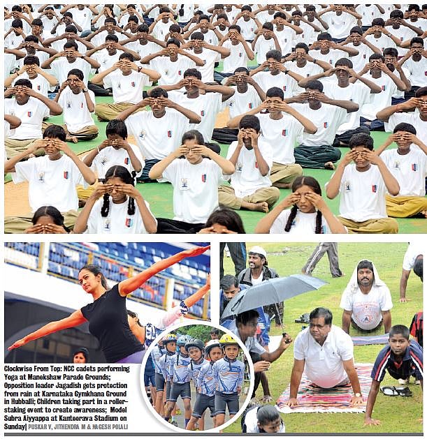 Siddaramaiah also paid homage to yoga greats from the state. “We have had many yoga exponents from the state including B K S Iyengar, Pattabhi Jois and Krishnamachari. We are also the only state in the country to have a Yoga and Naturopathy University. Today, the Department of AYUSH has ensured that this occasion was celebrated in every district,” he added. Union minister Ananth Kumar, health minister U T Khader and others were present.