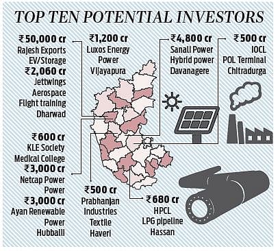 Most of the proposed investments is coming from one company — Rajesh Exports Limited — which has signed a memorandum of understanding to invest Rs 50,000 crore for manufacturing of electric vehicles and Lithium-Ion cells and batteries at Dharwad. This is expected to generate employment for 10,000 people. The company will invest in a phased manner over the next 15 years.