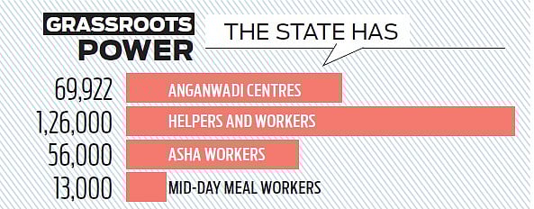 Their salaries have not gone up since 2009. Similarly, salaries of Anganwadi workers have not been increased since 2018. Their salary is Rs 11,500 to Rs 12,000, of which the Centre’s share is Rs 2,700. The helpers’ salary is Rs 7,000 and the Centre gives Rs 2,000.”