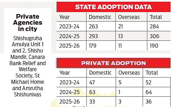 “The Mamatheya Thottilu programme has completed a year now. So far, we have received only one infant. The programme also facilitates safe surrender of differently abled children, so that they can be taken care at institutions run by the government, as well as NGOs. There are 21 government-run child adoption agencies in 21 districts and 24 privately run specialised adoption agencies operated by NGOs. This financial year, we have so far facilitated the adoption of 190 children, and the number is likely to go up in the remaining four months. Two children are eligible for inter-country (foreign) adoption, and the process is in progress.”
