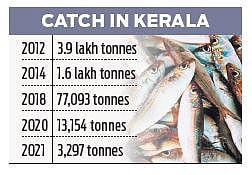 While mechanised boat owners blamed traditional fishermen for the destructive fishing practice, the latter alleged trawl boats employing pair trawling practice were catching juvenile fish in large quantities. In 2012, fishermen in the state caught 3.9 lakh tonnes of oil sardines. The number plummeted to just 3,297 tonnes in 2021.