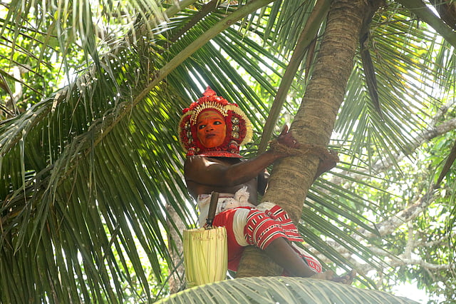 The narrative revolves around a young man from a marginalised caste who died after falling from a coconut tree. He is said to have attained divinity thereafter. To honour this legend, the Kandakkoran Theyyam re-enacts the tale by climbing a coconut tree, plucking the fruit, and descending in a posture mirroring the fatal fall.