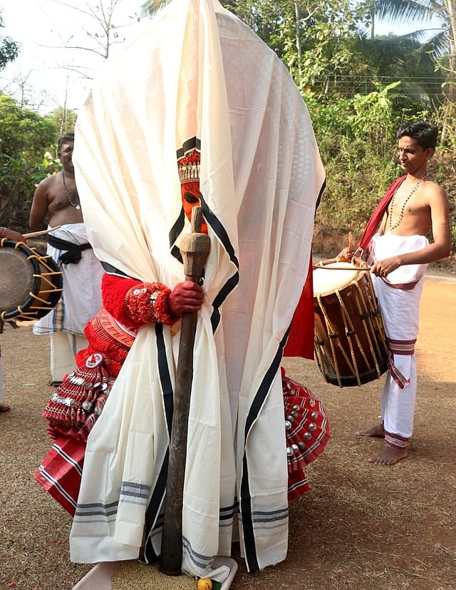 This Mappila Theyyam of Kasaragod is linked to the saga of Yogyar Nambadi, an army chief of the Nileswaram dynasty, who killed a Muslim woman for eating a handful of rice while at work. To placate her spirit, the woman was accorded divine status.
