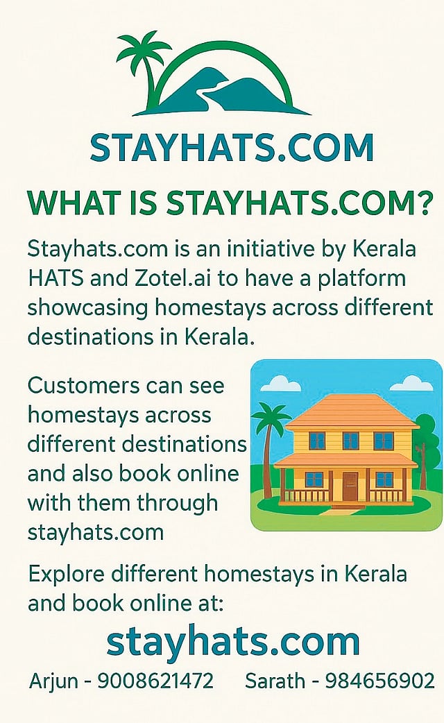 KOCHI: Having tasted success with its e-book, which lists properties across the state available for tourists both domestic and international, the Kerala Homestay and Tourism Society (K-HATS) is now planning the launch of a booking platform. The group is planning to launch the portal, www.stayhats.com, by the end of this month. According to the society, the portal is powered by artificial intelligence (AI).
