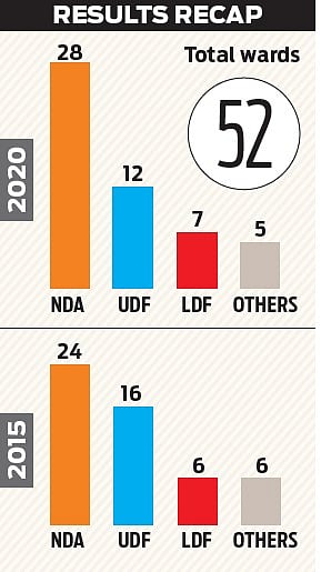 In the 2020 elections, the BJP won 28 of the 52 seats, improving on its 2015 tally of 24 seats and securing control of the municipality. This time, it hopes a decade’s worth of development projects will help it retain power. However, internal feud present a major challenge, particularly in Palayam ward.