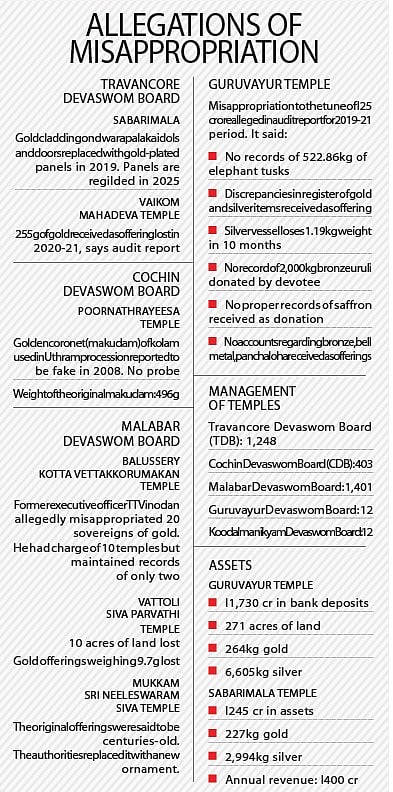 What followed was a clamour by devotees to probe allegations of corruption in other temples. And, the latest report by the state audit department on the Guruvayur Sri Krishna temple details reported misappropriation to the tune of `25 crore between 2019 and 2021.