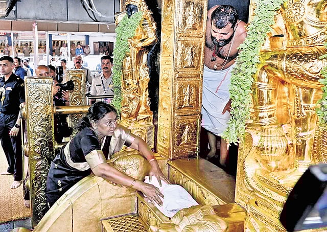 PATHANAMTHITTA: An incident involving President Droupadi Murmu’s helicopter during her visit to Sabarimala on Wednesday morning has triggered a political and administrative row, after visuals showed the helicopter being manually moved by security and fire personnel at the Rajiv Gandhi Indoor Stadium Ground in Pramadom.