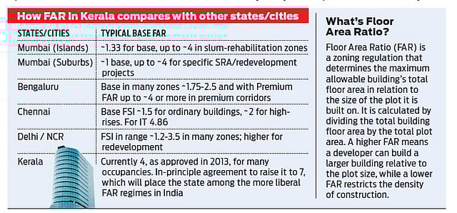 In the past, FAR in the state was 1.5, which was amended in 2013 and raised to 4. Industry observers believe this move could catalyse a new wave of IT park developments and corporate campus investments in Kochi and Thiruvananthapuram, aligning Kerala’s infrastructure policy with its long-term digital economy goals.