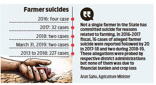 “Not a single farmer in the state has committed suicide for reasons related to farming. In 2016-2017 fiscal, 16 cases of alleged farmer suicide were reported followed by 20 in 2017-18 and two during 2018-19.