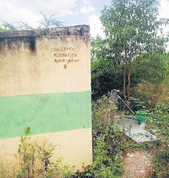 A few metres from the muttuthurai is a small cement structure, meant to be the toilet for the room’s residents. Outside the toilet is a dysfunctional handpump. “Women only use the toilet in emergencies at night. Otherwise, they go to the fields behind to relieve themselves,” says Mylammal. Shanthi, seated a little away from her, gazes silently at the fields. She has had to take an indefinite break from school, owing to her period.