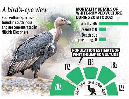 Chief Wildlife Warden Srinivas R Reddy confirmed to TNIE census dates have been finalised and all three states are gearing up for the exercise. “We are in the process of forming multiple teams. Census will be carried out in Mudumalai, Satyamangalam and Nilgiris forest division in Tamil Nadu, while Karnataka, Bandipur, Nagarhole and parts of MM Hills are known to house vulture population. In Kerala, Wayanad has sizable population.”