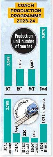 While the Chennai-based ICF will produce 1,105 economy AC coaches, Rail Coach Factory (Kapurthala) and Modern Coach Factory (Raebareli) are tasked to produce 880 and 780 coaches respectively. The 2,765 coaches were part of the total 6,978 coaches planned to be manufactured by the ICF, RCF and MCF for the upcoming financial year, revealed the official document.