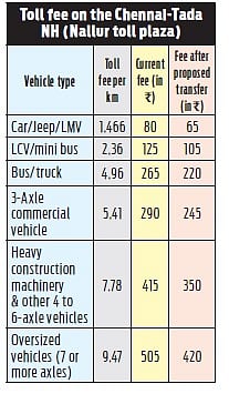 CHENNAI: Marking a first for Tamil Nadu, the toll fee for vehicles plying on the Chennai-Tada National Highway is set to be slashed by 14-15% at the Nallur toll plaza. The National Highways Authority of India (NHAI) has proposed transferring a 10-km stretch of the Chennai-Kolkata NH 16 from Madhavaram Junction to Padiyanallur to the state highways, making it a toll-free section.