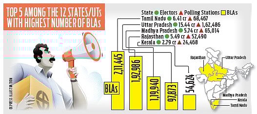 UP, the most populous state, with 15.4 crore voters and 1.62 lakh polling stations, had only 1.92 lakh BLAs, compared to TN’s 2.11 lakh BLAs for 6.4 crore voters and 68,467 polling stations.