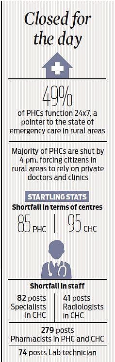HYDERABAD: Painting a sorry picture of the primary rural health situation in Telangana, the Rural Health statistics (RHS-2020-21) released by Union Health Minister Mansukh Mandviya has shown there is a whopping 53% shortage in the number of Community Health Centres (CHCs) in the State.