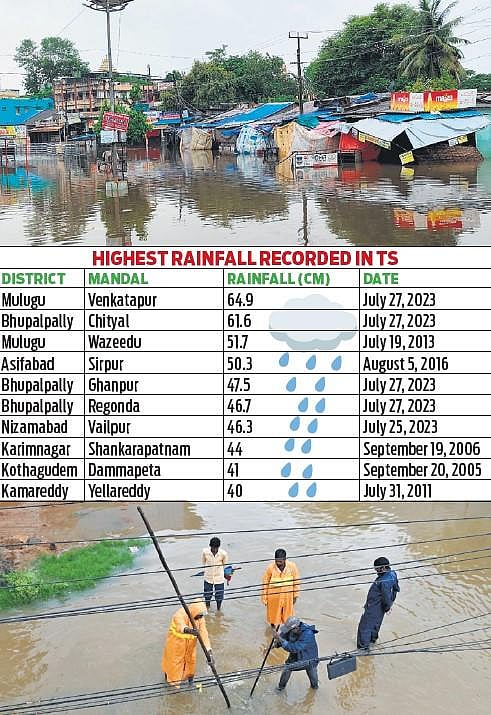HYDERABAD: In what is being considered the most intense rainfall ever recorded in Telangana, Venkatapur in Mulugu district experienced an all-time highest rainfall of 64.9 cm.