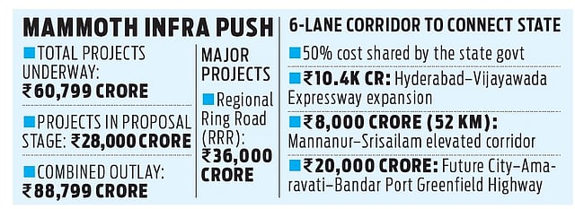 In addition, projects worth another Rs 28,000 crore, including the Mannanur–Srisailam corridor and the Future City–Bandar Port Greenfield Highway, are in the proposal stage.