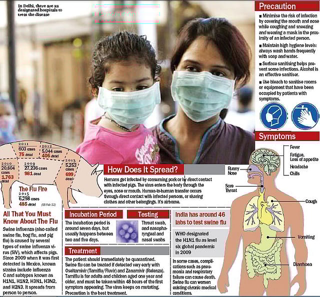 SPREADING KILLER: Between January 1 and February 12 alone, 485 have died in India, according to additional health secretary Arun Kumar Panda. Over 6,000 people had tested positive for H1N1. From February 3 to February 10 alone, 206 people have died, taking the grim roll call of death to 407 this year. The most infected states are Delhi, Gujarat, Rajasthan, Karnataka, Madhya Pradesh, Maharashtra, Tamil Nadu and Telangana. Maharashtra, Madhya Pradesh, Gujarat, Rajasthan and Telangana reported most deaths. According to the latest government data, 5,157 swine flu cases have been reported from January 1 till now.