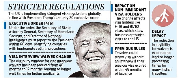 Indian travellers planning to renew US visas may now face a fresh challenge. In line with the new order, the US Department of State has abruptly reduced the eligibility window for visa interview waivers (dropbox) from 48 months to just 12 months, which will lead to longer wait for thousands of Indian applicants.