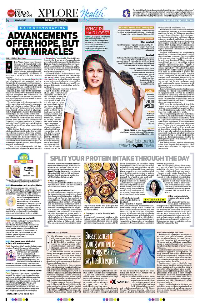 This week's Xplore Health talks about breast cancer in young women, hair restoration advancements, our body's daily protein intake and more...