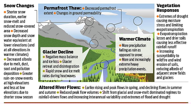 The Indo-Gangetic basin, heavily dependent on glacial meltwater for agriculture, faces imminent challenges as erratic water availability threatens food production. "Glacier-fed rivers are the lifeblood of South Asian agriculture. If we lose them, we risk devastating food shortages," said Dr Jos Timmerman, a water policy expert contributing to the report. The HKH region supports large agricultural economies that depend on predictable water cycles. In some areas, glacial water accounts for up to 70% of river flows during dry seasons.